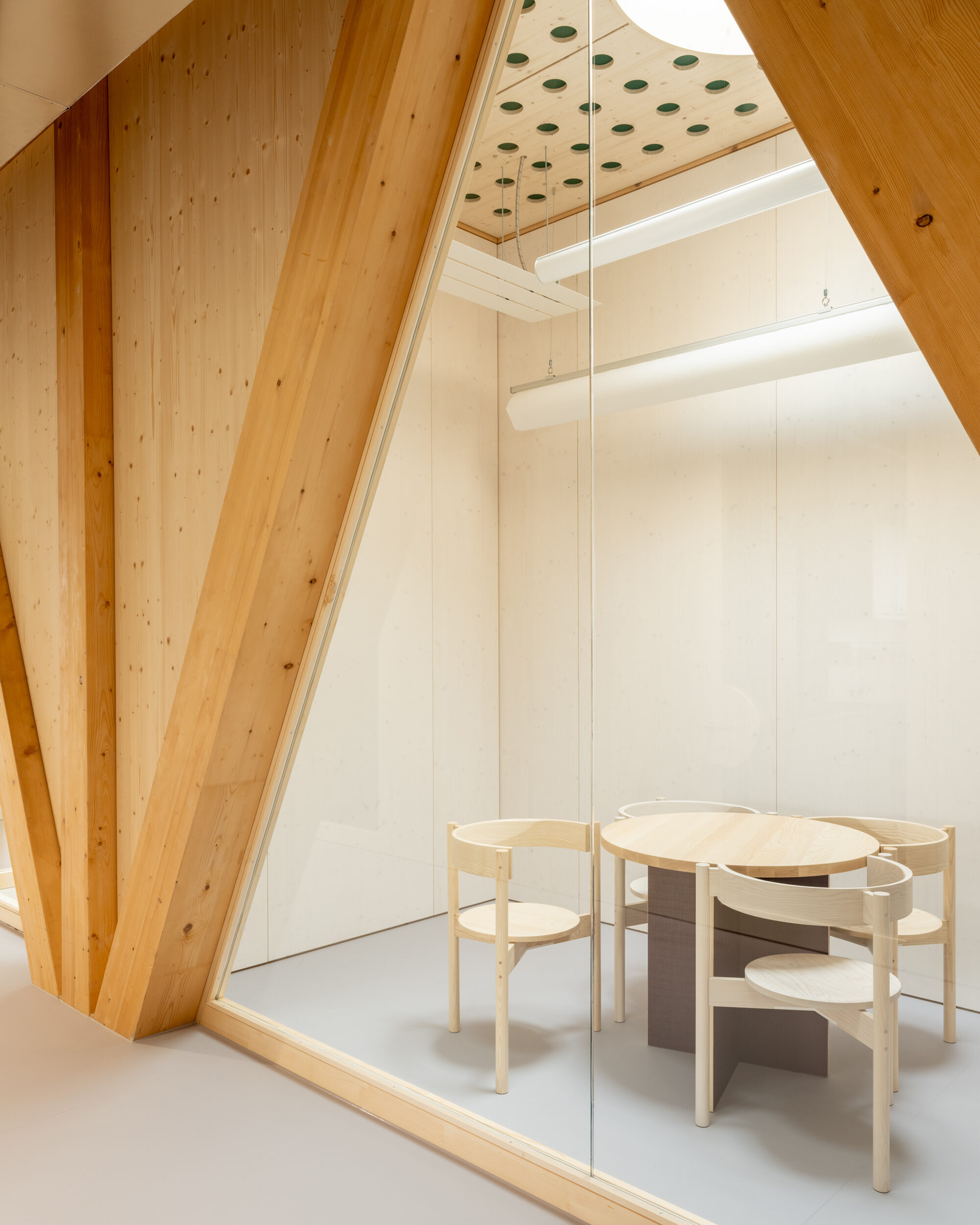Der Raum bietet neben klassischen Büros einen Ort für offene, spontane Besprechungen, Interaktionen, Besucheraufenthalte und Veranstaltungen.