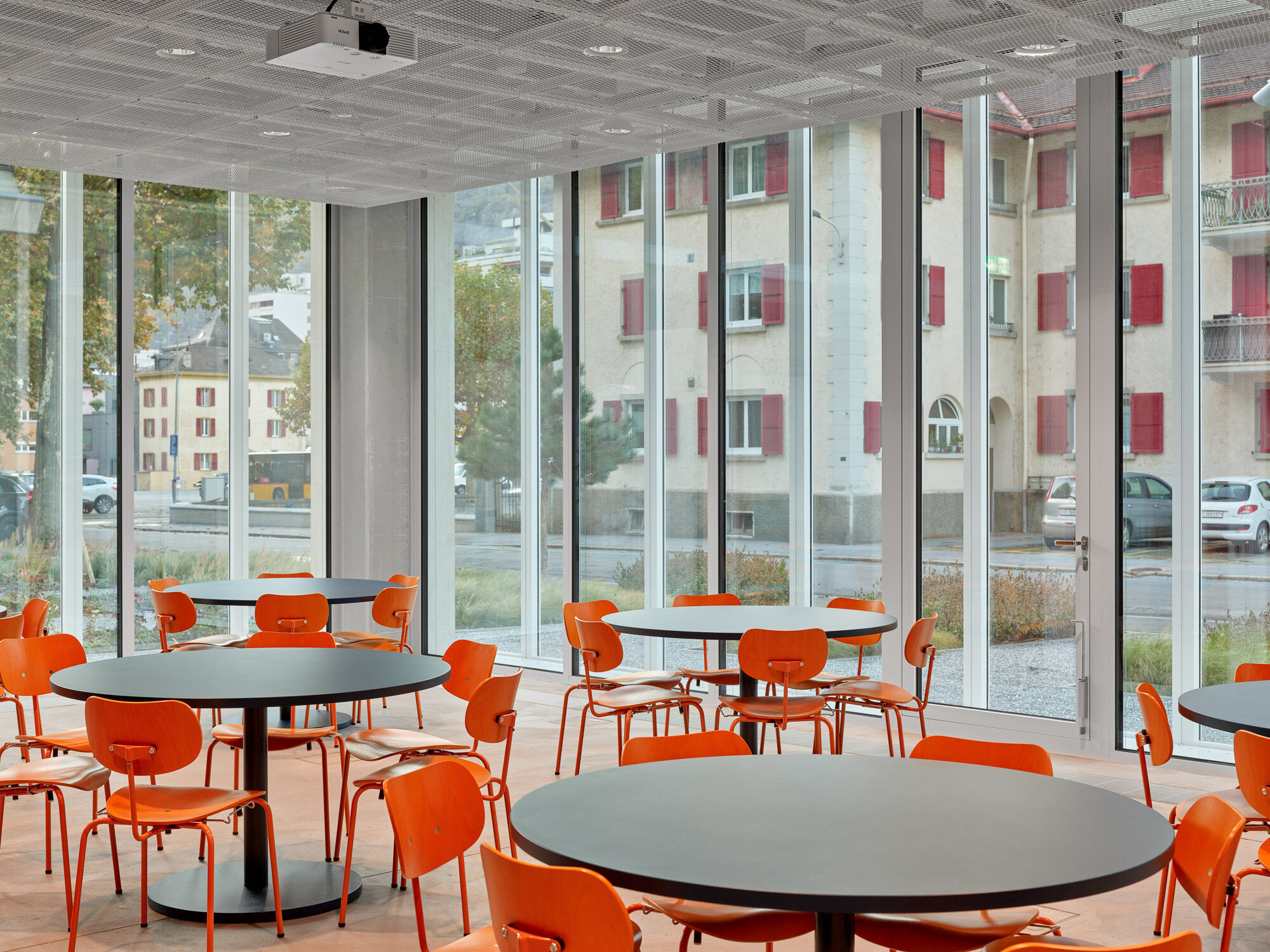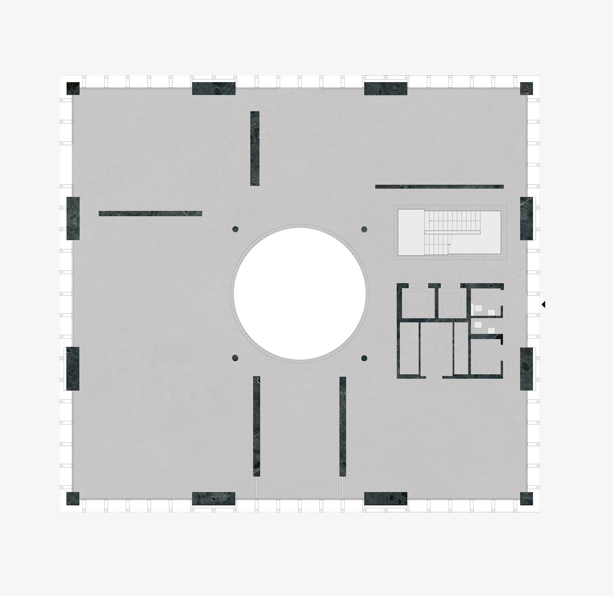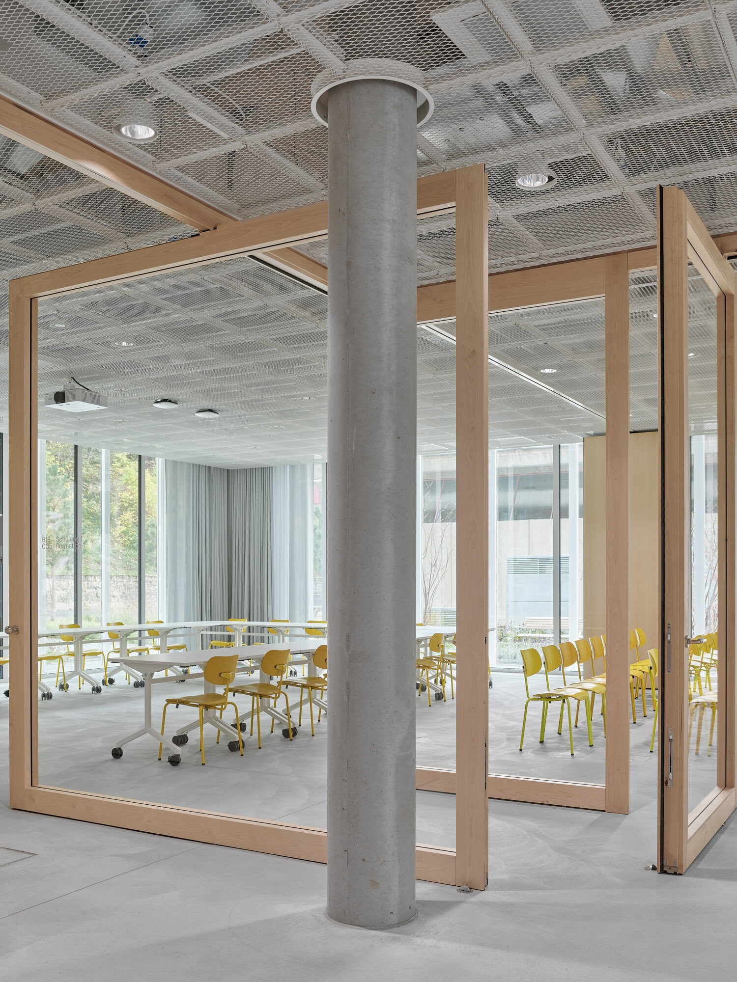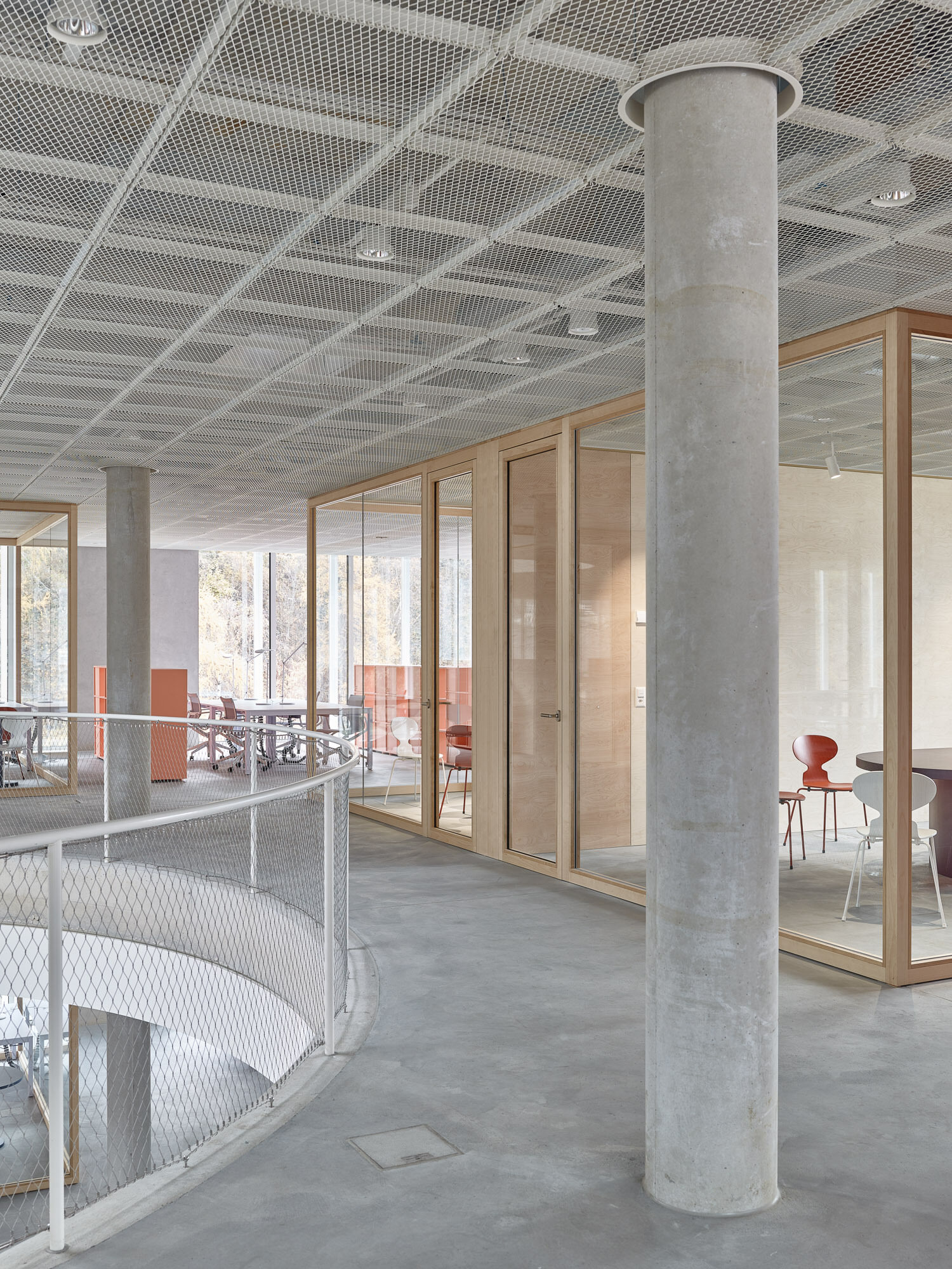 Es entstehen drei grossräumige Arbeits-, Forschungs-, und Konferenzcluster über jeweils zwei Geschosse. Der zentrale Luftraum wird zu einem kommunikativen Zentrum, das die interaktive Zusammenarbeit und ein gemeinschaftliches Arbeiten fördert.