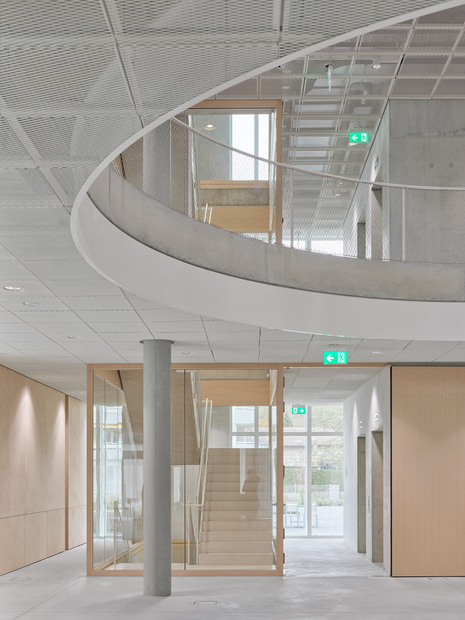 Immer zwei Geschosse sind über einen grossen kreisförmigen Luftraum zu einer Nutzungszone verbunden.
