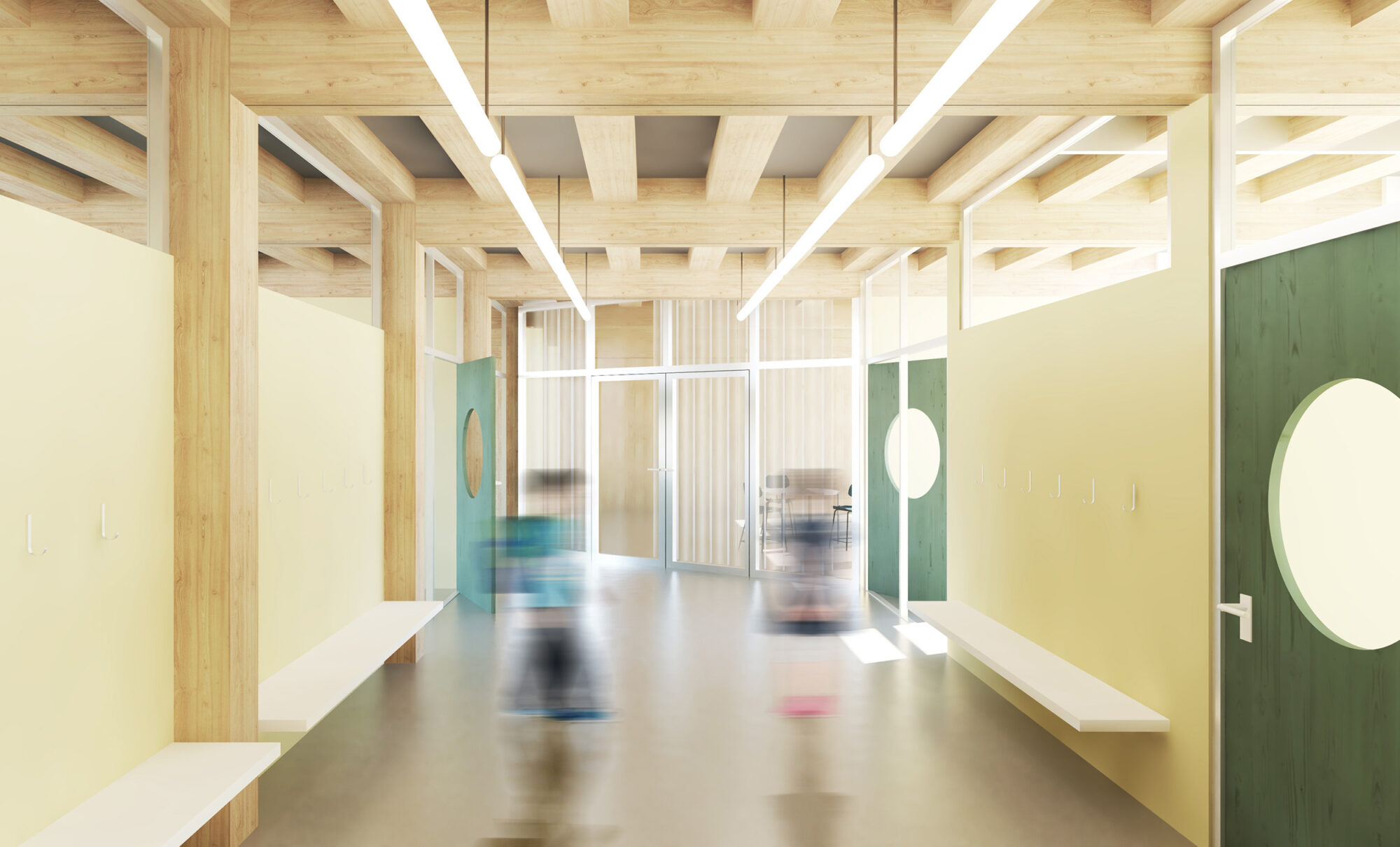 The new building restructures the southern part of the school complex, clearly arranges the rooms and remains open and permeable. The outdoor space, the existing building and the new building form a coherent school complex that can still be read and experienced as a garden school.