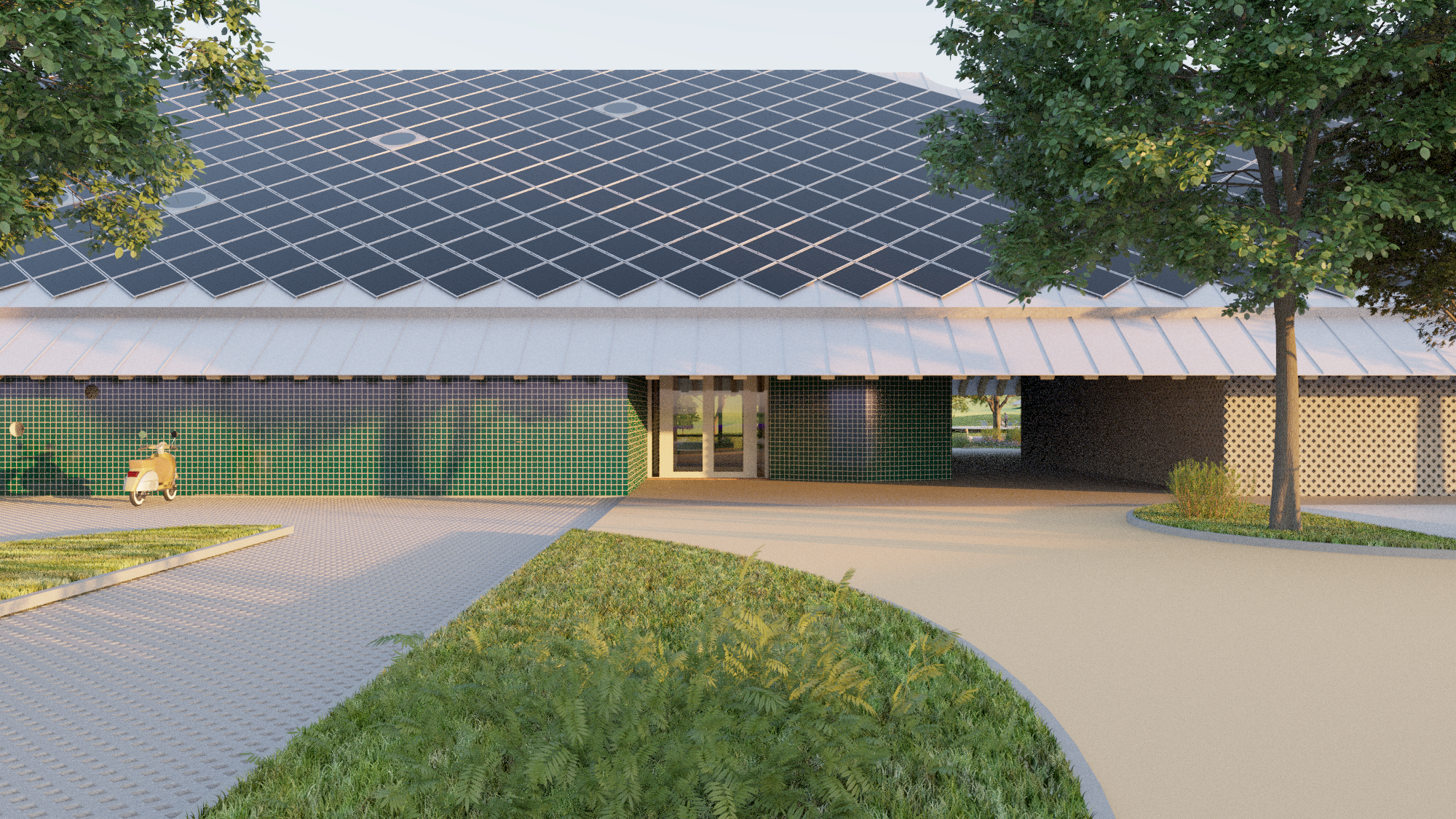 The new building defines the boundary between natural and built environments, acting as a filter and mediator between the two realms. It forms both the new entrance façade of the indoor and outdoor pool and the northern back of the Oberdorf outdoor pool.